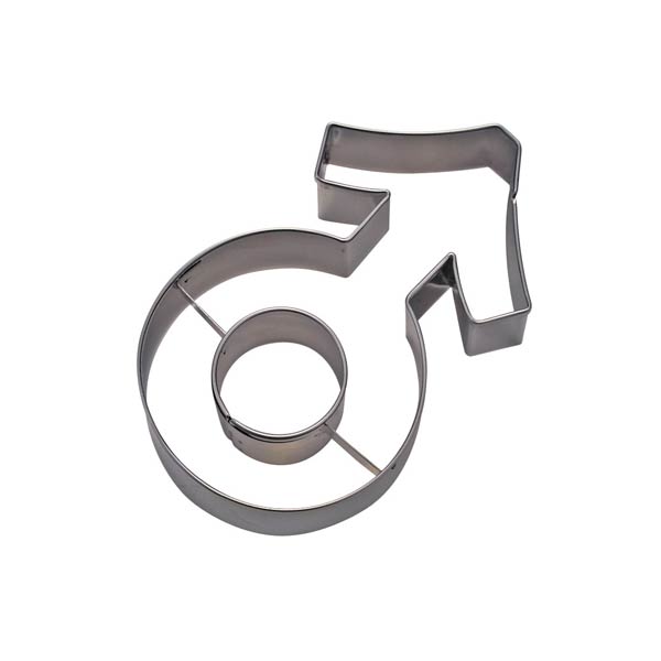 Ανοξείδωτο κουπάντ στο σχήμα του ανδρικού συμβόλου, με διάσταση 9 cm.