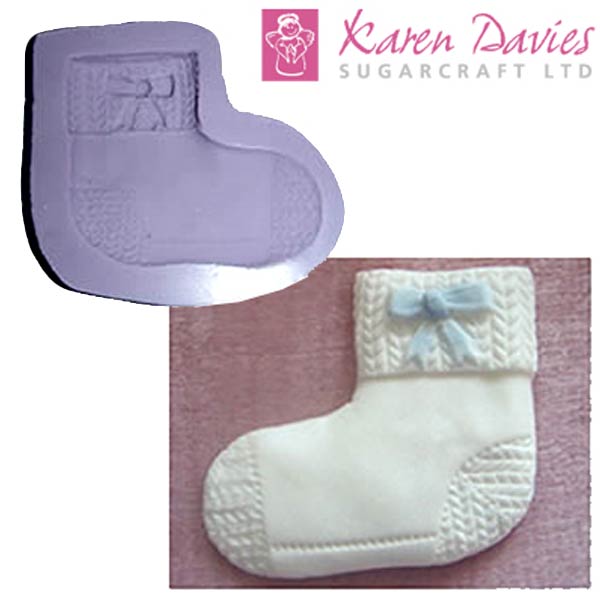 Κουπάντ από σιλικόνη κατάλληλη για τρόφιμα με σχέδιο καλτσάκι μωρού και διάσταση 6,2x6,7 cm.