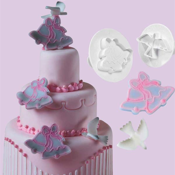 Σετ 2 τεμαχίων κουπάντ από πλαστικό κατάλληλο για τρόφιμα, με γιορτινό θέμα "Καμπάνες & Περιστέρι" σε διαστάσεις 62x53mm και 57x36mm.