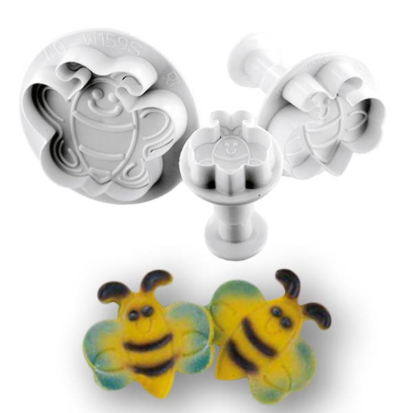 Σετ 3 τεμαχίων σφραγίδας με ελατήριο από πλαστικό κατάλληλο για τρόφιμα, με θέμα "Μέλισσες", σε διαστάσεις 20x21mm - 31x34mm - 43x47mm.