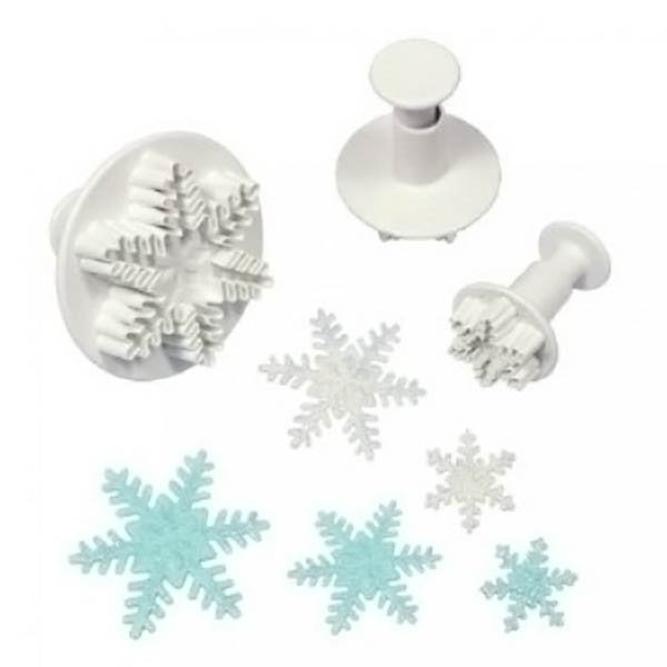 Σετ από 3 κουπάντ σφραγίδες από πλαστικό κατάλληλο για τρόφιμα, με θέμα Χιονονιφάδες, σε διαστάσεις Ø25mm - Ø40mm - Ø56mm.