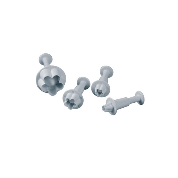 Σετ 4 κουπάντ από πλαστικό κατάλληλο για τρόφιμα με θέμα ανθάκια, σε διαστάσεις 8, 10, 15, 23 mm.