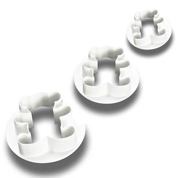 Σετ 3 τεμαχίων κουπάντ από πλαστικό κατάλληλο για τρόφιμα με θέμα αρκουδάκι, σε διαστάσεις 22, 45 και 75 mm.
