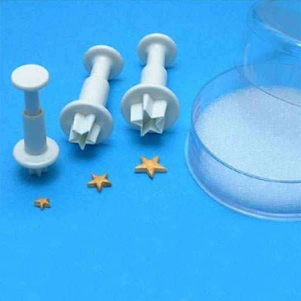 Σετ 3 κουπάντ με ελατήριο, από πλαστικό κατάλληλο για φαγητό, σε σχήμα αστεριού, σε διαστάσεις 7, 10 και 13 mm.