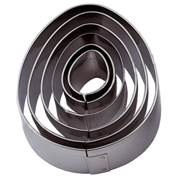 Σετ 7 τεμαχίων ανοξείδωτων κουπάντ σε σχήμα αυγού, σε διαστάσεις από 22 μέχρι 90 mm.