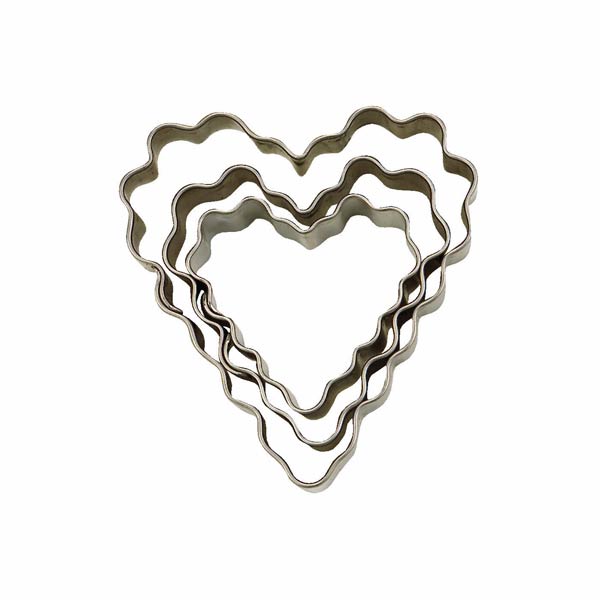 Σετ 3 τεμαχίων ανοξείδωτων κουπάντ με θέμα κυματιστές καρδιές και σε διαστάσεις 3 cm, 4,5 cm και 6 cm.