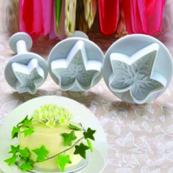 Σετ 3 τεμαχίων σφραγίδας με ελατήριο από πλαστικό κατάλληλο για τρόφιμα, με θέμα φύλλα κισσού, σε διαστάσεις 20mm, 30mm και 37mm.