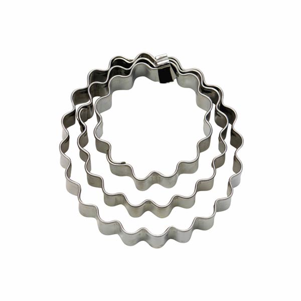 Σετ 3 τεμαχίων ανοξείδωτων κουπάντ με θέμα κυματιστούς κύκλους και σε διαστάσεις 4, 5 και 6 cm.