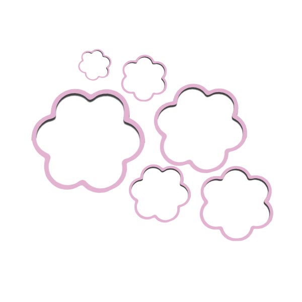 Σετ 6 κουπάντ από πλαστικό κατάλληλο για φαγητό, σε σχήμα λουλουδιού, σε διαστάσεις από 30 έως 114 mm.
