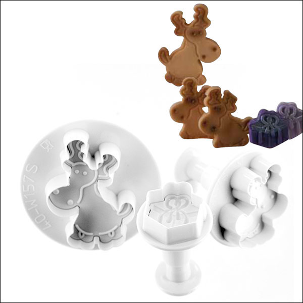 Σετ από 3 κουπάντ σφραγίδες από πλαστικό κατάλληλο για τρόφιμα, με σχέδιο τάρανδους, και διαστάσεις 24x23mm, 39x29mm και 53x37mm.