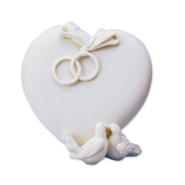 Καρδιά με βέρες και περιστέρια. Στολίδι για γλυκά γάμου διαστάσεων 12 cm.